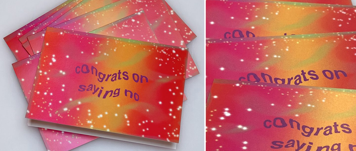 We really love these folded cards by YES! (Your Empowered Sexuality!), reminding us that it’s healthy to say no sometimes. Pick some up and shop their other cards here.