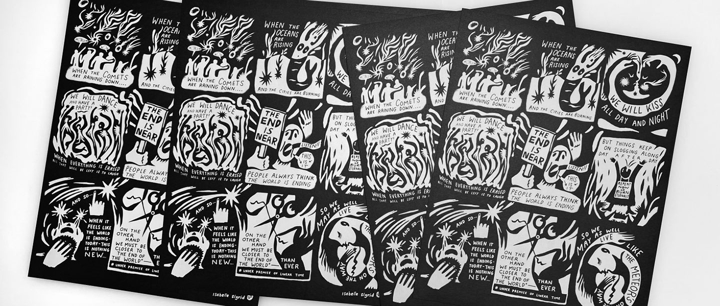 These lovely prints were created by Isabelle Sigrid and printed with white ink on our New Black 120lb Cover paper. Check out more of Isabelle’s work here!