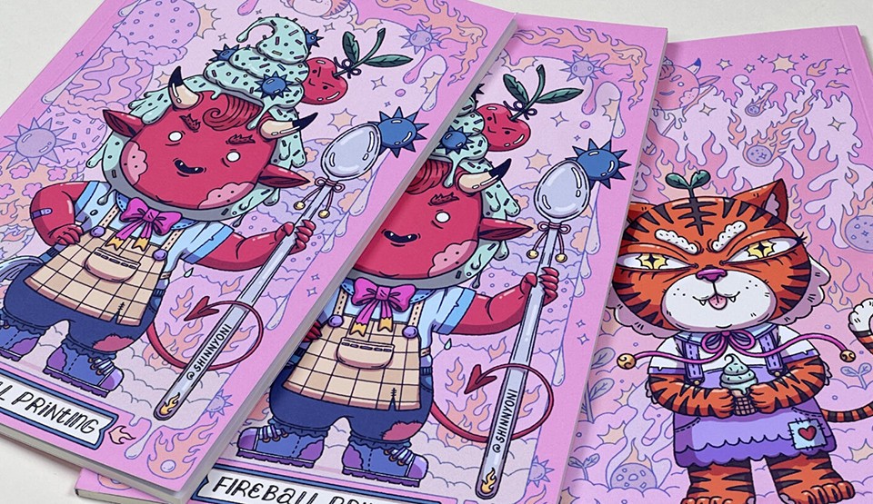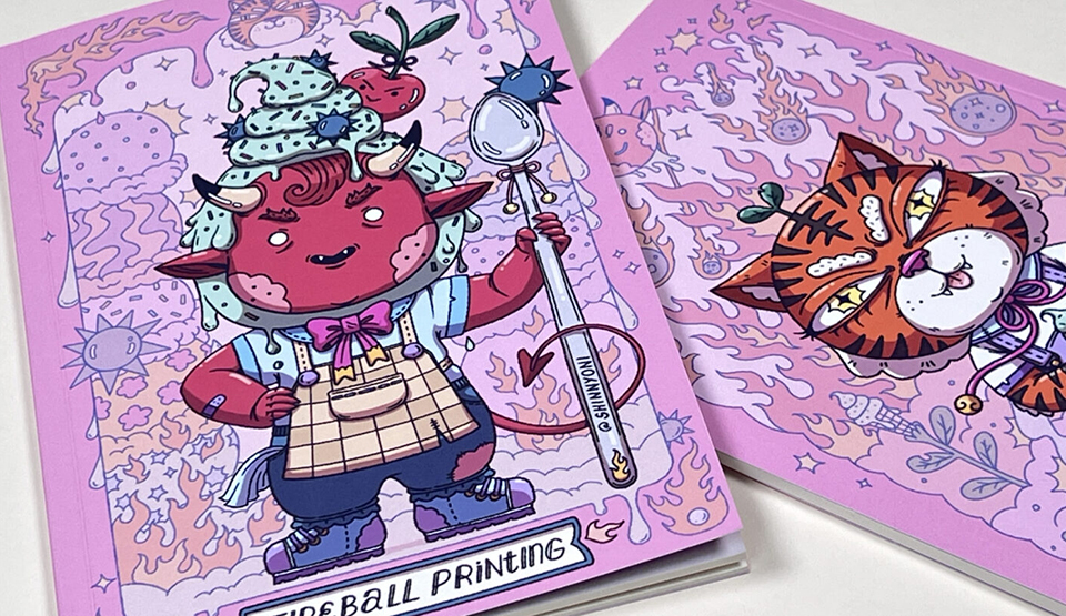 We worked with ShinYeon Moon to design these 5.5×8.5 dot grid notebooks. The covers are printed on 100lb Smooth Uncoated Cover with 1.2 Mil Soft Touch Laminate on the outside cover, and perfect bound with 50 pages of dot grid insides on Natural White 70lb Text.