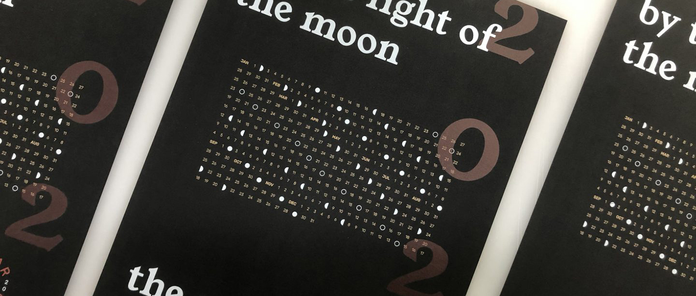 Jodi created these minimal lunar calendars, in two different colorways, for our Open House Masquerade Party in November 2019. See more of Jodi’s work here!
