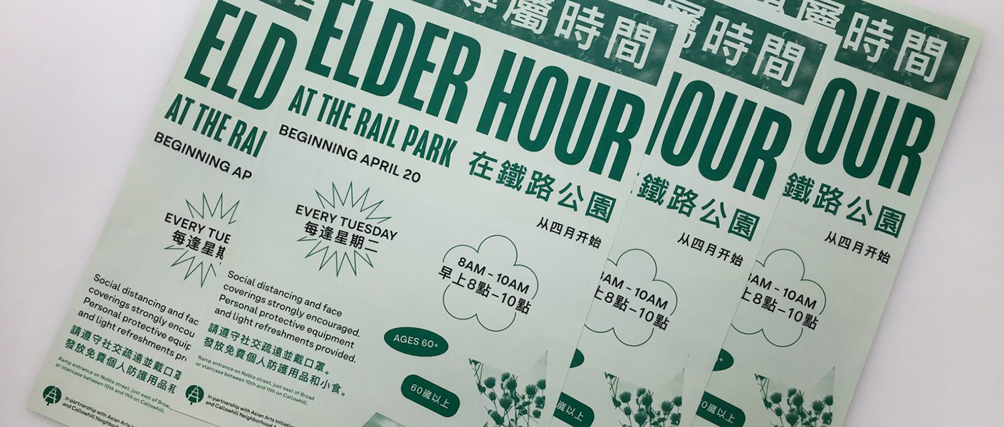 The Rail Park is one of our favorite spots in Philly. We recently printed these gorgeous posters, designed by Smith & Diction, to advertise Elder Hour, a recurring event for those age 60+, every Tuesday from 8am to 10am. Visit The Rail Park’s website for more details and for info about The Rail Park.