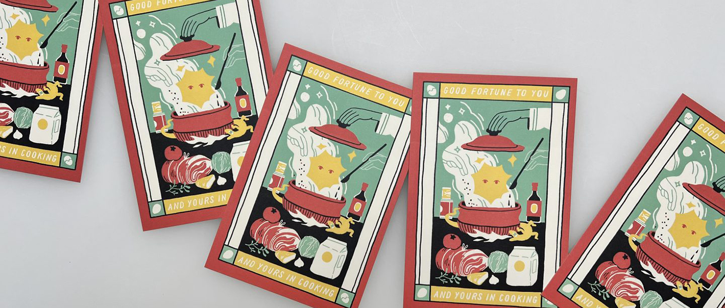 Jean Wei’s been one of our favorite artists to work with for a while now. There’s so much great stuff on Jean’s site, including these holiday cards and talismans.