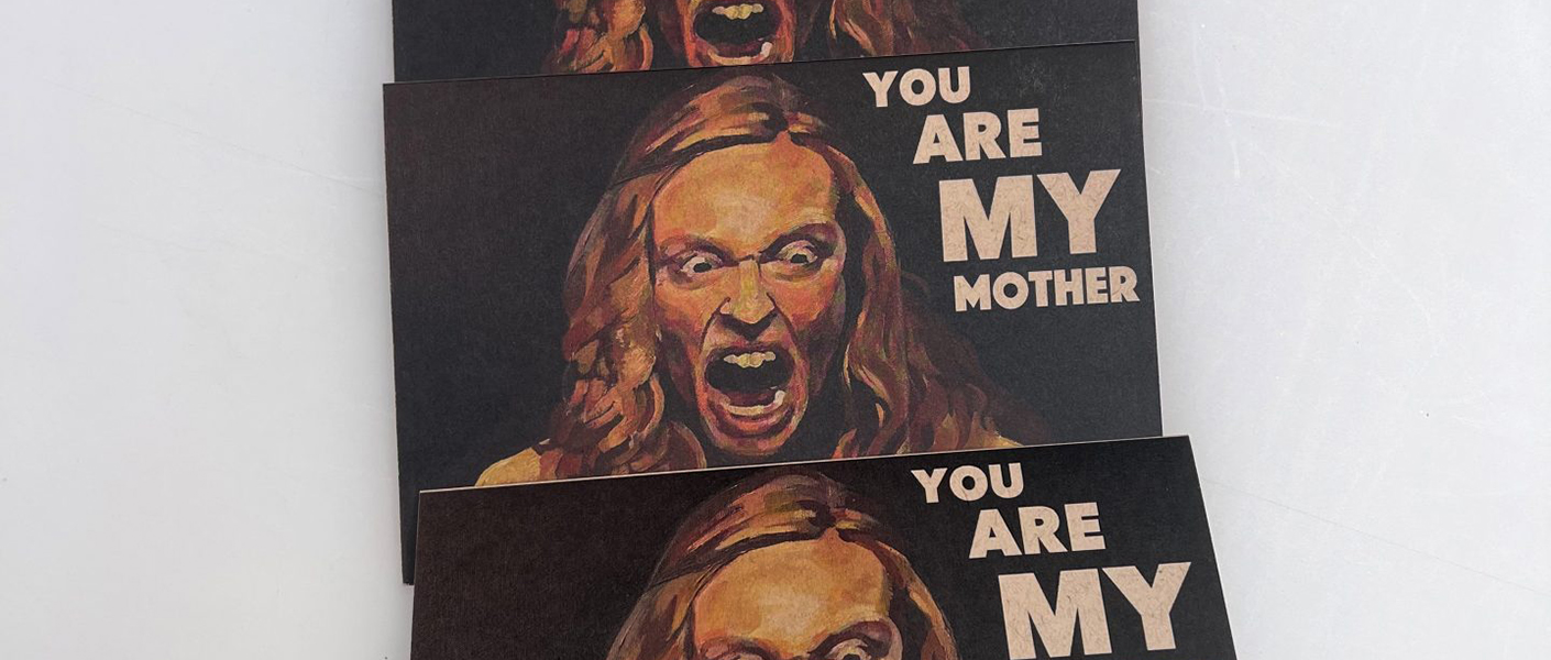 These folded cards feature an original painting by Hannah Eagle. Their work really brings out the emotion and intentions (and often the horror) of their subjects, more of which you can view on their Ko-fi Shop or Instagram.